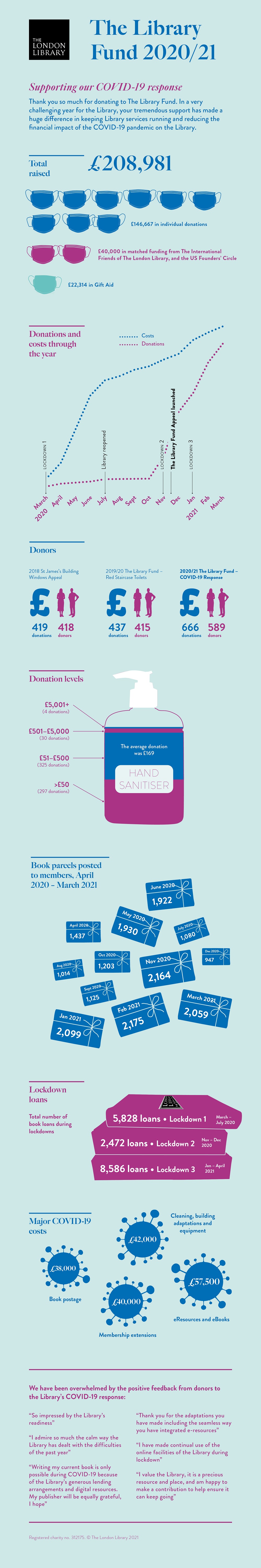 Our Library Fund infographic presents some interesting facts and figures about the Library’s COVID-19 response and donors’ support for The Library Fund (click to view full size).
